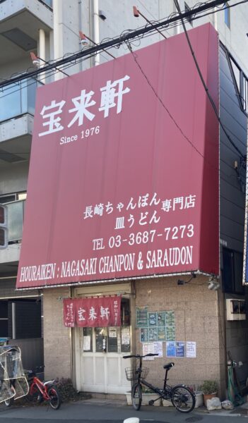 長崎の宝来軒から1976年に葛西で創業し、はや半世紀。ポルトガル語の混ぜるがなまってちゃんぽん。ウスターソースをかけて本場長崎スタイル。食器各種はテーブルにセッティング。口頭注文、食後現金会計システム。テイクアウト可能。要お鍋または耐熱タッパー。訪問時、地元客を中心に常に満席状態。