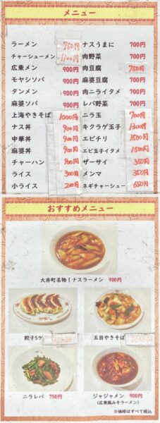 麺は石山勇人プロデュース。飲食店の雑居ビルの一階。昼間の間借り営業。竹岡式スタイル。店内はL字カウンター席のみ。お冷はルイボスティーのセルフ。卓上玉ネギは入れ放題。注文は伝票記入、食前現金会計システム。訪問時、休日ともあり地元の朝散歩客で常に満席状態。