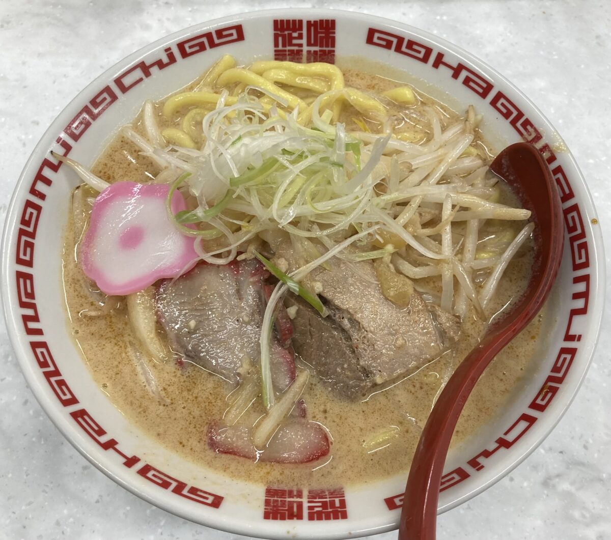 チャーシューは脂身の少ない豚肩の煮豚と吊るし焼赤の2種類。中華鍋で炒められた野菜はシャキシャキ食感。渦巻ナルトではなく、梅型かまぼこにエモさを覚える。瑞々しいネギの清涼感は名脇役。個性を出しながらも味噌ブランド確立に大きく躍進する一杯でした。