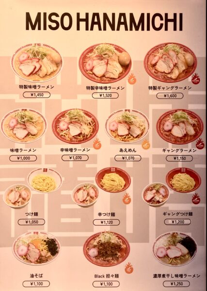 ミシュランビブグルマンに掲載の味噌ブランドのリニューアル店舗。麺は500gまで、札幌風ちぢれ麺にも変更可能。店頭の打ちっぱなし風の建て構えにネオン管の看板が目印。店内は厨房を仕切る真っ白いカウンター。お冷はルイボスティーも提供。キャッシュレス決済可能。奥にはテーブル席も完備。