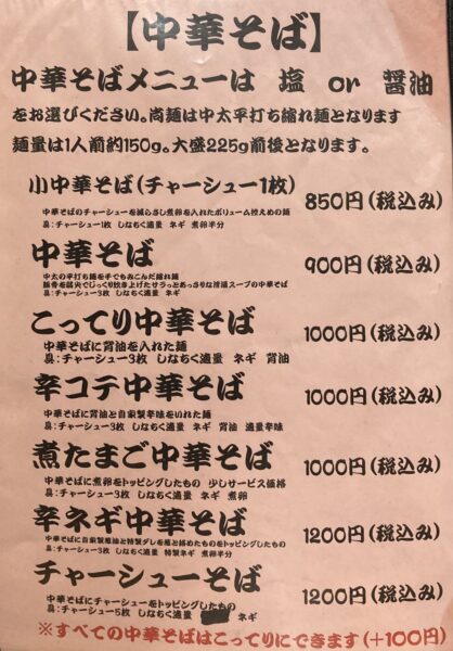 葛飾区役所蕎麦の住宅地。メニューは塩と醤油の2本柱。ゲリラ的限定ランチタイムはライス類割引。※残した場合は正規料金。麺半分、チャーシュー抜きは30円引き。店内は蕎麦屋風の和テイスト。口頭注文、食後現金会計システム。訪問時、運よく貸し切り状態。