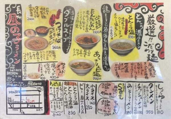 長洲とは熊本。ラーメンでいうと玉名系に近い。お店の極意と呼ぶとんこつ濃厚スープと鶏メインの清湯スープの2本柱。獣臭漂う店内は壁一面に手書きのメニュー。テーブル席も充実。口頭注文、食後現金会計システム。駐車場有り。訪問時、休日の朝から開店と同時にほぼ満席状態。