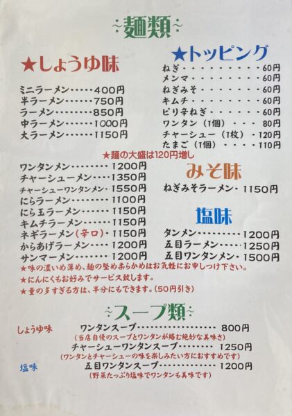 1974年創業。湯河原の老舗、味の大西で10年。小田原系を継承するボリュームたっぷりの街中華。店前おじり公園と室川の抜群の景観。麺半分は50円引き。口頭注文、食後現金会計システム。専用駐車場有り。訪問時、4人の列に20分待ち。地元のランチ客で常に満席状態。