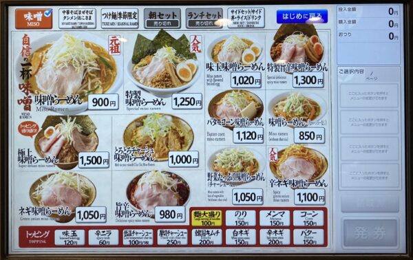 二郎系から味噌に業態変更。栃木のみそら道のフランチャイズ。開業に向けた研修支援も展開。店内はカウンター席に、テーブル席も充実。炒め野菜は単品注文不可。無料の高菜は激辛注意。紙エブロン有り。訪問時、会社帰りのサラリーマンを中心にほぼ満席状態。